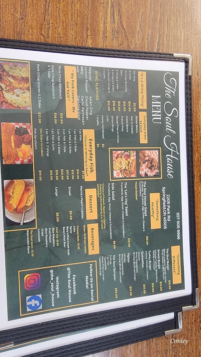 Welcome to The Soul House, a vibrant restaurant located at 2205 Park Rd, Springfield, OH. The menu is a delightful tribute to soul food, featuring a range of options that promise to tantalize your taste buds. Highlighted items include The Soul Burger and Smash Burger, both priced at $15, while the Pork Chop Dinner offers a savory encounter for just $21.